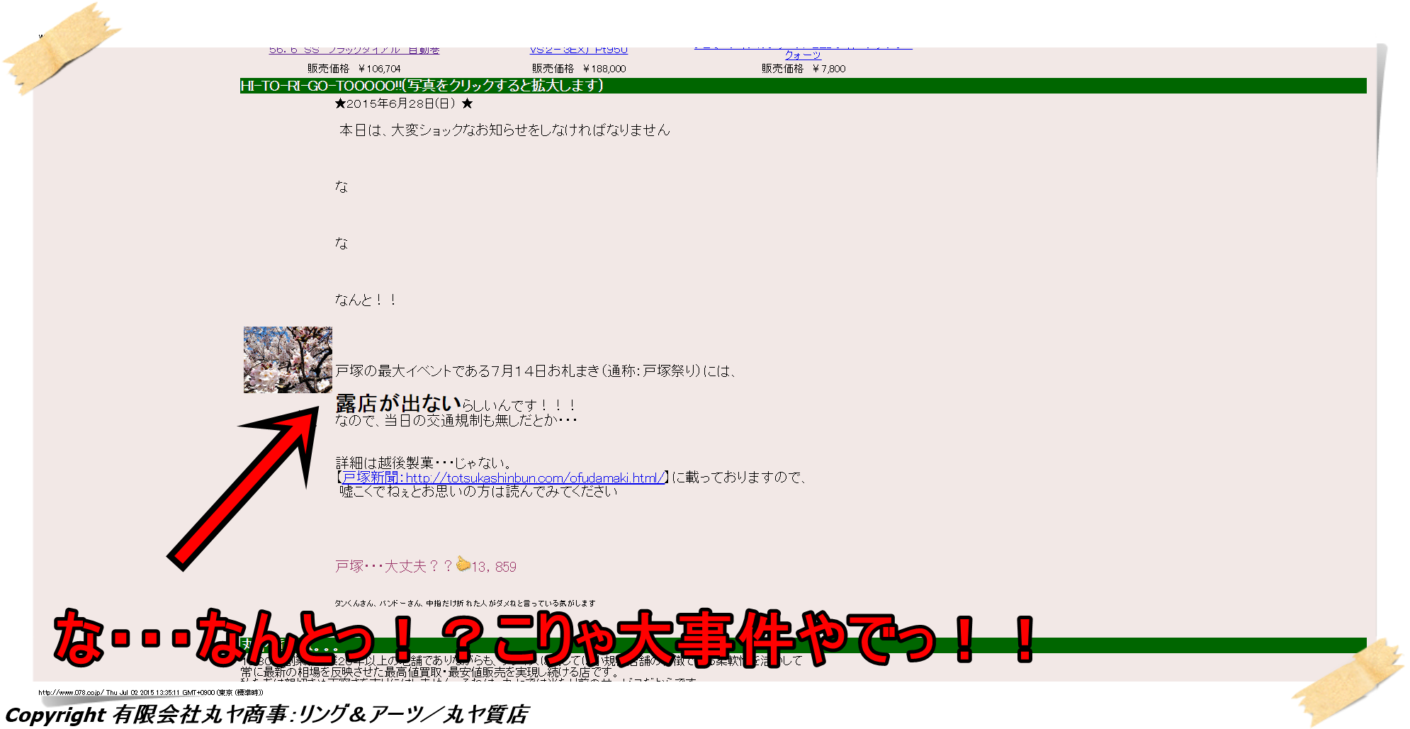 ところで、元港南台店スタッフで現在戸塚本店に栄転した弟が担当する弊社のオフィシャルWEBショッピングサイト内のコンテンツ“HI-TO-RI-GO-TOOOOO!!(写真をクリックすると拡大します)”の2015年6月28日(日) 更新分にて、戸塚っ子としてはカナリ衝撃的なニュースが掲載されておりましたっ!