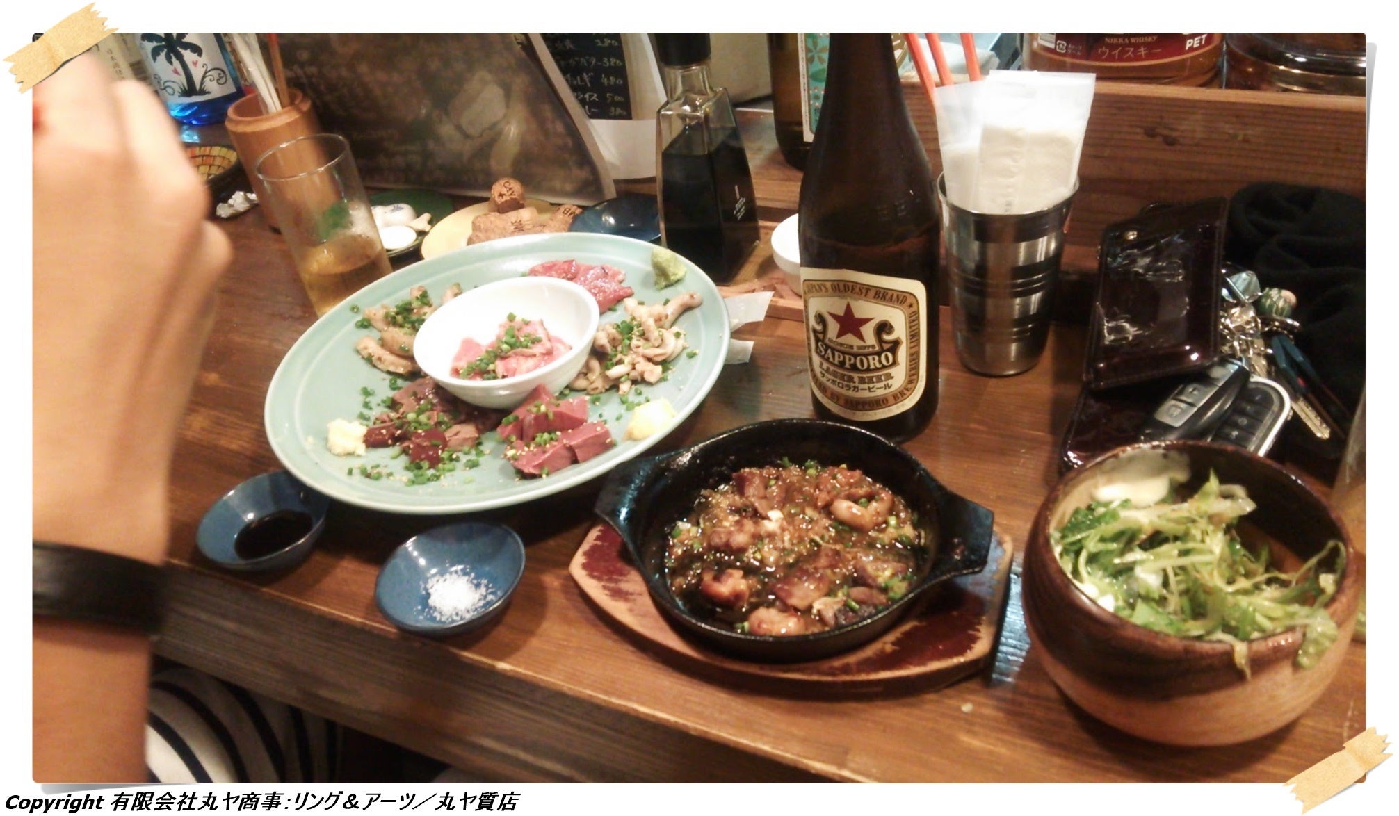 お肉は刺身の盛り合わせ、ホルモン炒め(味噌)、鉄板焼き(リブロース他計2種類)と頂いたのですが、どれも美味しかったですねっ♪