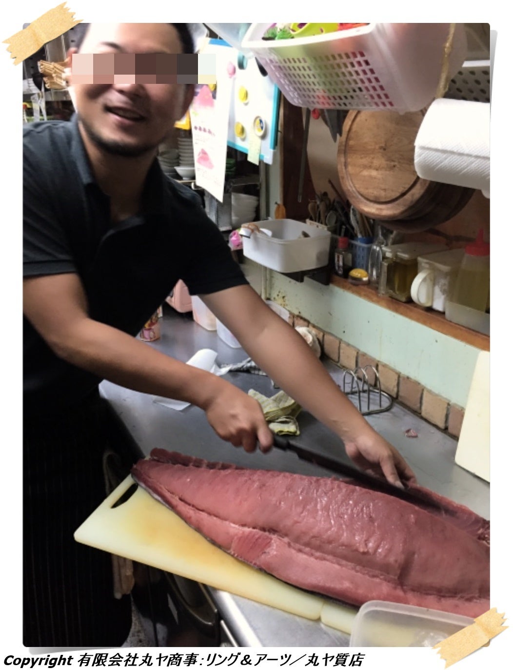 何やら、弟の行き付けの居酒屋さんの【創作居酒屋と手打ちそば わび茶-WABICHA-】のスタッフの方が海でマグロを釣り上げたとの報告が↑上の画像↑と共にメールで送られてきたみたいので、(恐らく振る舞われるだろうから)一緒に行かない?って事だったみたいです。