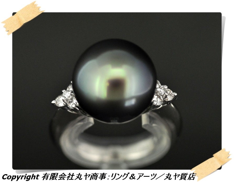 ■Pt900枠黒蝶貝パール&ダイヤモンド入りファッションリング:13mm玉/0.24ct/サイズ=#10号/中央宝石研究所鑑別書付属