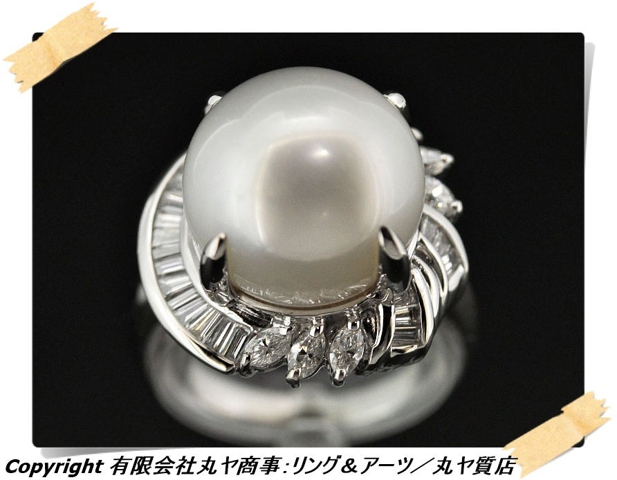 ■Pt900枠南洋パール&ダイヤモンド入りファッションリング:13.9mm玉/0.88ct/サイズ=#14号/中央宝石研究所鑑別書付属