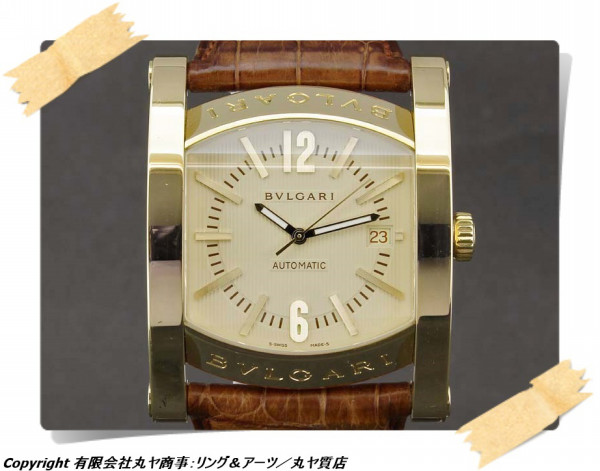 ◆ブルガリ:アショーマ/Ref.AA48G型/750YGケース×ブラウン色レザーバンド/アイボリー色ダイアル/自動巻き=オートマティック駆動/定価1382400(込)