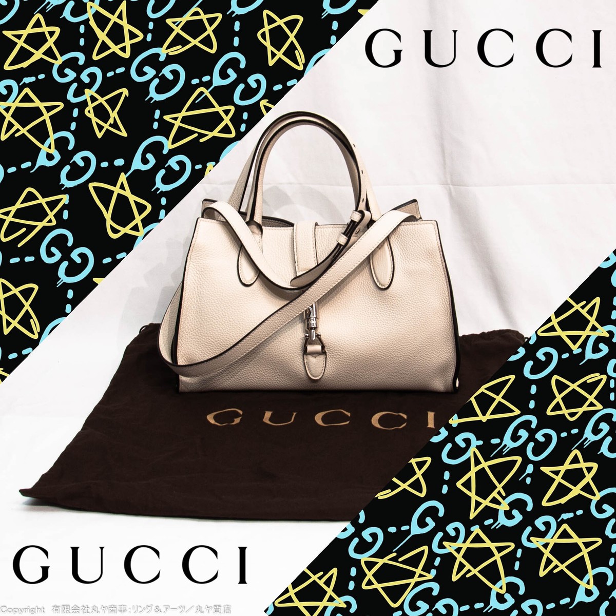 グッチ:ニュージャッキー2WAYバッグ/365460型/オフホワイト色/GUCCI グッチ:ニュージャッキー2WAYバッグ/365460型/オフホワイト色/GUCCI | 【有限会社丸ヤ商事:丸ヤ質店/リング&アーツ】港南台店オフィシャルウェブショップ"・・・とある質屋の店長の私物! ◆管理番号:518886◆ブランド名:グッチ/GUCCI◆モデル名:不明(ジャッキー金具開閉2WAYバッグ)※ショルダーストラップの着脱不可です。◆ライン名:ニュージャッキー◆色:オフホワイト色×シルバー◆素材:レザー×メタル◆型番:365460型◆サイズ:W32.5cm/H21cm/D12cm(実測値)◆定価:271000(抜)◆付属品:保存袋◆コンディション:AB◆補足情報:角擦れ、底擦れ、ボンド跡こそ、全般的には綺麗です。しかし、全般的に綺麗にも関わらず箇所箇所にダメージがあり、アンバランスなコンディションな為、厳しめに評価して、普通に使われていた中古品=ABランクと評価させて頂きました。画像にあるようなダメージ感が許容できるようであれば、全般的には綺麗なコンディションなので、コストパフォーマンス的にもオススメです。#グッチ #GUCCI #2WAY #2WAYバッグ #ジャッキー #ニュージャッキー #オフホワイト #OFFWHITE #アイボリー #ivory #GUCCIBAG #GUCCILOVER #GUCCILOVERS via 【有限会社丸ヤ商事:丸ヤ質店/リング&アーツ】オフィシャルサイト Your own website, Ameba Ownd