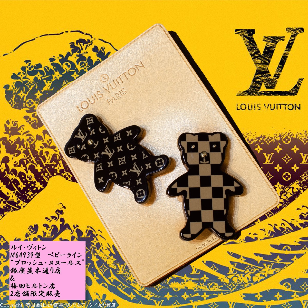 ルイ・ヴィトン:ブロッシュ・ヌヌールス/M64939/国内2店舗限定販売品/LouisVuitt ルイ・ヴィトン:ブロッシュ・ヌヌールス/M64939/国内2店舗限定販売品/LouisVuitton | 【有限会社丸ヤ商事:丸ヤ質店/リング&アーツ】港南台店オフィシャルウェブショップ"・・・とある ◆管理番号:40613◆ブランド名:ルイ・ヴィトン/LOUIS VUITTON◆モデル名:ブロッシュ・ヌヌールス(ピンブローチ)◆ライン名:2006年プレフォール・コレクション ベビーライン※銀座並木通り店・梅田ヒルトン店2店舗限定販売品◆素材:プラスチック系樹脂◆型番:M64939型◆サイズ:ブローチ単体幅4.6x高さ6.5xマチ0.6cm16.9g(実測値)ヌメ革製台座:幅10x高さ146cm18.6g(実測値)◆定価:55000(抜)◆製造番号:無し◆付属品:ヌメ革製台座、箱、袋◆コンディション:AB◆補足情報:本体に各々小傷有、モノグラム柄裏面金具部分に小さなメッキ剥げ有、ヌメ革製台座に日焼け有。汚さを感じられる程では無いものの、ダメージ感はある為、通常使用されていた中古品=ABランクと評価させて頂きました。#ルイヴィトン #ヴィトン #LOUISVUITTON #VUITTON #ブロッシュヌヌールス #ブロッシュヌヌール #モノグラム #monogram #DAMIER #ダミエ #銀座並木通り店 #梅田ヒルトン店 #M64939 #ベビーライン #2006年プレフォールコレクション #限定品 #limitededition #louisvuittonlover #louisvuittonlovers #louisvuittonaccessory via 【有限会社丸ヤ商事:丸ヤ質店/リング&アーツ】オフィシャルサイト Your own website, Ameba Ownd