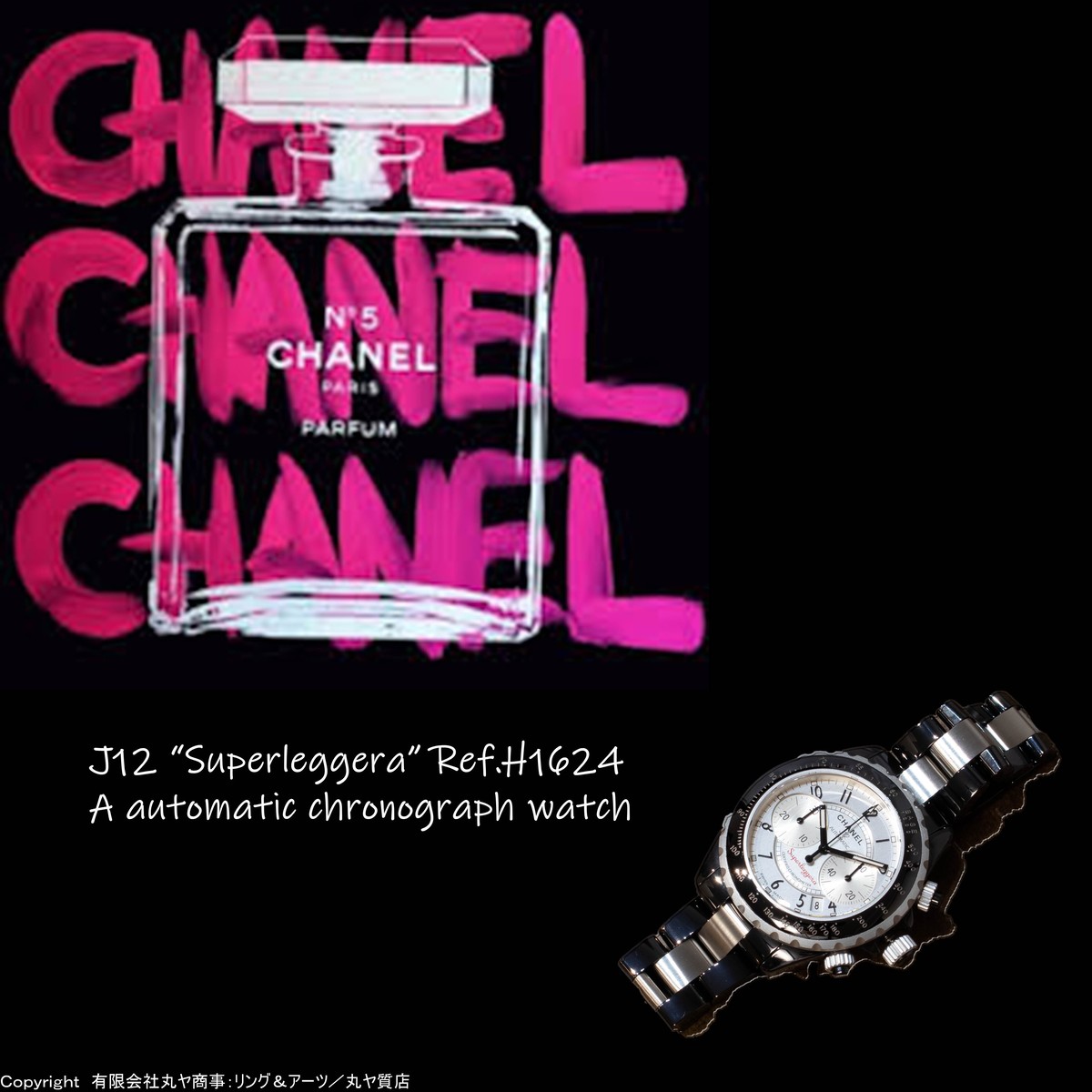 シャネル:J12スーパーレッジェーラクロノグラフ/H1624型/自動巻/CHANEL シャネル:J12スーパーレッジェーラクロノグラフ/H1624型/自動巻/CHANEL/SUPERLEGGERA | 【有限会社丸ヤ商事:丸ヤ質店/リング&アーツ】港南台店オフィシャルウェブショップ"・ ◆管理番号:45451◆ブランド名:シャネル/CHANEL◆モデル名:J12 スーパーレッジェーラ“Superleggera”(クロノグラフ=ストップウォッチ・デイト日付表示機能付き腕時計)◆型番:Ref.H1624型◆駆動方式:自動巻/オートマティック◆歩度(RATE):日差±0~1秒※30分以上測定時数値◆素材:ハイテクセラミック×アルミニウム×ステンレススチール製◆重量:160.1g◆内径=腕周り:19~19.5cmの間位(実測値)◆風防素材:サファイアガラス(サファイアクリスタル)◆防水:200m防水(20気圧防水)◆ケースサイズ:41mm※竜頭含まず(実測値)◆定価:840000(抜)◆製造番号:I.C.50〇94※個人情報の兼ね合いの為、一部を伏せております。◆付属品:ギャランティカード(12/2/6、WATCHES OF SWITZERLAND 69 BROMPTON ROAD KNIGHTSBRIDGE LONDON SW3 1DB)◆コンディション:A◆補足情報:尾錠やブレスレットの裏側のステンレス部分に小傷こそあるものの、ガラス傷も無く、ベゼル周辺も綺麗な為、綺麗に使われていた中古品=Aランクと評価させて頂きました。#シャネル #CHANEL #J12 #J12クロノグラフ #J12chronograph #J12スーパーレッジェーラ #J12SUPERLEGGERA #スーパーレッジェーラ #SUPERLEGGERA #H1624 #CHANELLOVERS #CHANELLOVER #CHANELWATCH via 【有限会社丸ヤ商事:丸ヤ質店/リング&アーツ】オフィシャルサイト Your own website, Ameba Ownd