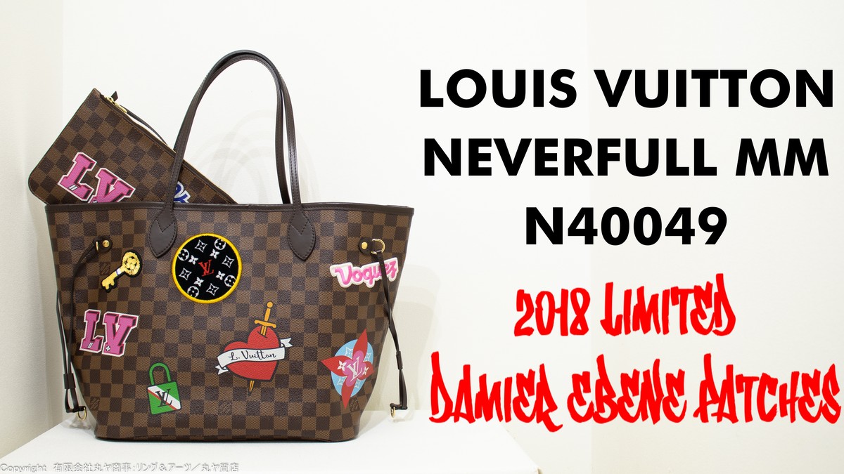ルイ・ヴィトン:ネヴァーフルMM(ポーチ付き=新型)/2018限定ダミエ・エベヌ パッチーズ/N40049型/Louis Vuitton Neverfull MM 2018 Limited Damier Ebene Patches