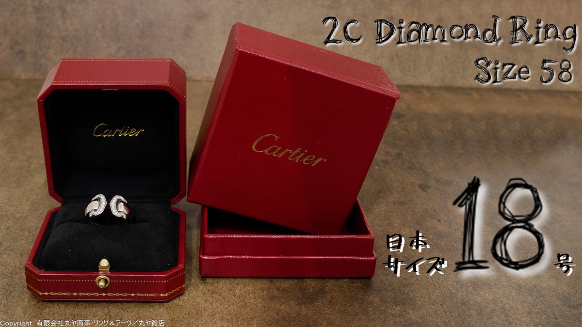 カルティエ:2CリングLM“ブークルセ”/750WG/14.6g/#58サイズ(実寸18号)/Cartier Logo de Cartier 2C Diamond Ring White Gold