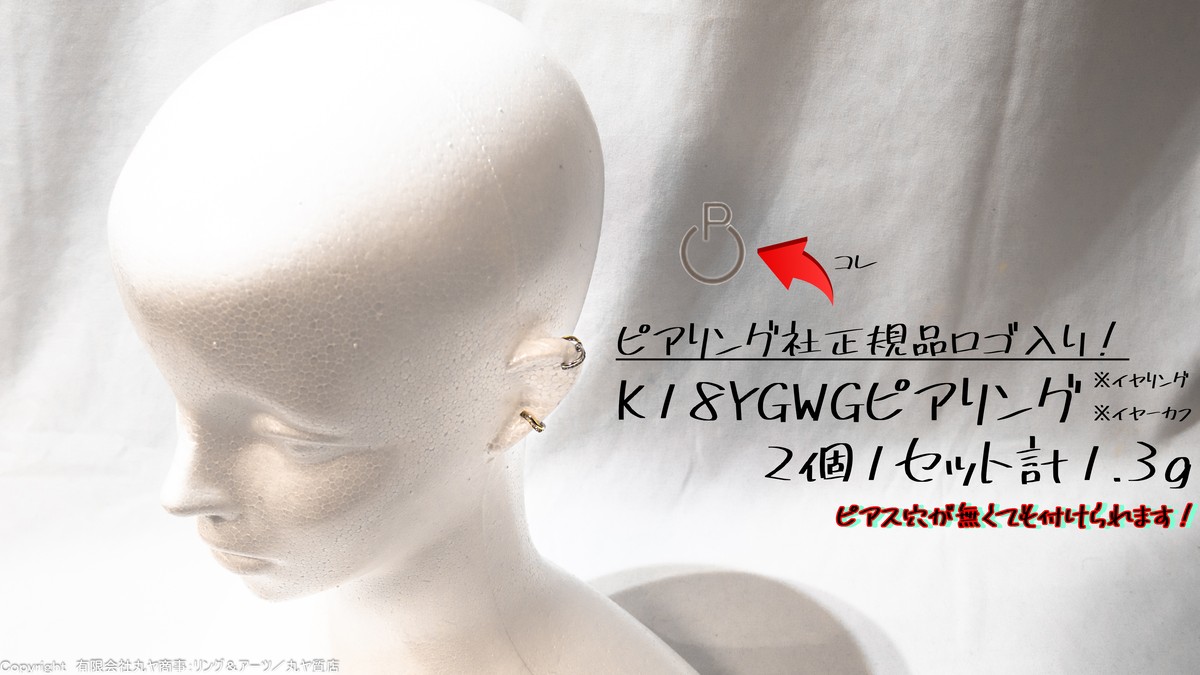 ピアリング:K18ピアリング≒イヤーカフ≒イヤリング2ケ1セット合計1.3g/18金/イエローゴールド/ホワイトゴールド/earring/earcuff | 【有限会社丸ヤ商事:丸ヤ質店/リング&アーツオフィシャルウェブショップ