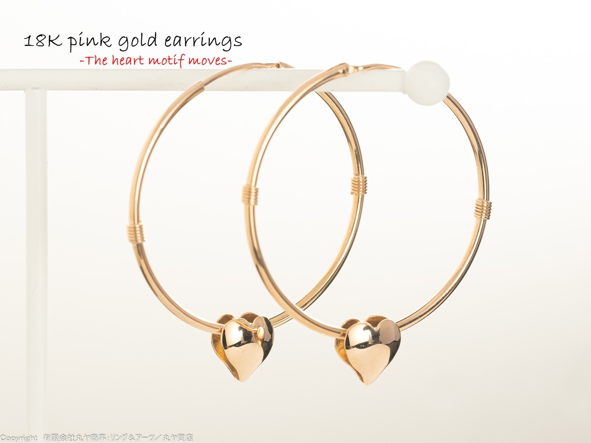 可動式ハートモチーフ付きK18PG枠リングピアス/18K pink gold earrings | 【有限会社丸ヤ商事:丸ヤ質店/リング&アーツ】港南台店オフィシャルウェブショップ"・・・とある質屋の店長の私物!?
