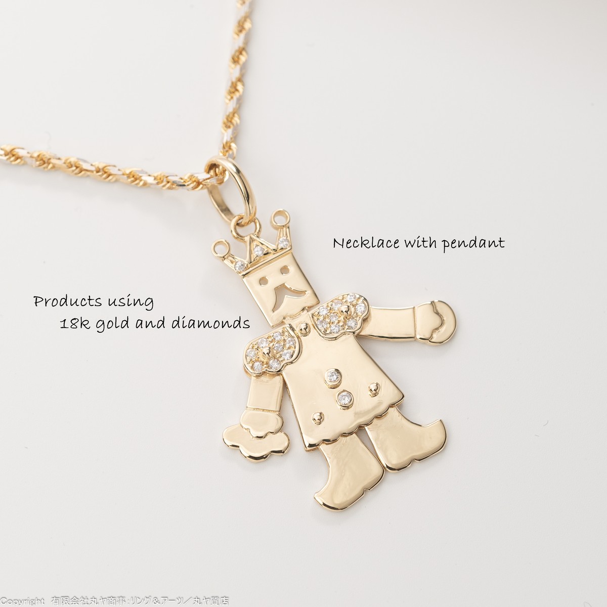 K18枠ダイアモンド入り可動式人型モチーフペンダントトップ付きネックレス/Necklace with pendant Products using 18k gold and diamonds
