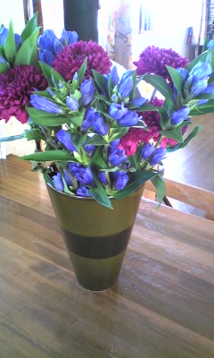 夏は花のもちが悪いので東京から取り寄せるのは控えております。毎週日曜日、スーパーの朝市で切り花を調達。さてさて・・・今日は助産院に行ってきました。予定日も過ぎていますが赤ちゃんはお腹の中で元気な様子なのでまだまだ待つことに。予定日から2週間までは正常出産の範囲だそうで。母体はかなーり辛いんですけどね。きっと「自分の時間と家族の時間をしっかりとりなさい」なんて赤ちゃんが私に休息を与えてくれてるのだと思います。産まれたらホントに大変な数年間になるのだから。こんなに仕事から離れたのは久しぶりだもんね。