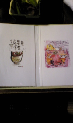 旬味酒彩れん 今夜は家族で「旬味酒彩れん」に行ってきました。とにかく美味しいこちらのお店は目でも舌でも楽しめます。メニューは1冊の絵本のようになっていてとってもお洒落。主人の知人の版画家が書きました。どのお料理にも作り手の腕とセンスを感じます。これまでは、接待でお誘いを受けてしか行ったことがなかったのですが、家族でも会社でももっと利用する価値あるな、とあらためて思った満足のディナーでした。 旬味酒彩れん