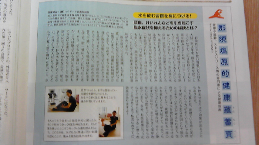 最近、連載記事を担当させていただいているfesを読んで、「オーナーのファンになりました」とおっしゃっていただいての、ジムへの入会者が増えています。ここのところ、公私共にスケジュールが押していてジムにいる時間が少なくなってしまっていますが、そんな声を聞くとやはり少しでも長い時間、1日でも多く、ジムにいる時間を作り、地域の女性達をもっともっと元気にしたいな、と思います。5月の創刊号から担当させていただいているこの連載ですが、もうすぐ発行になる8月号では、夏のおススメエクササイズとして、私の最も得意な分野から「水中ウォーキング」を紹介させていただいてます。さーて、来月は知識の引き出しから何を引っ張り出そうか?と取材もまた、楽しみにしております。fesは下記の場所等で手に入れることができます。