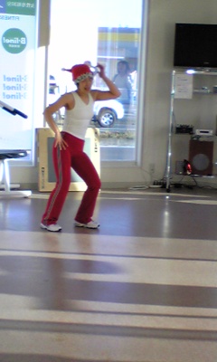 サンタのダンス 土曜のビーライン出勤は営業時間もいつもと違いますし、なんとなくのんびりとしていていいなぁと思いながら仕事しています。営業後はサークルなどに使っているのですが、今日は踊るサンタが。写真はチーフの橋本インストラクター。ヒーラインのサークルはレベルアップを目指すものではなく、気軽に楽しんでいただくもの。エアロビクス、水中エクササイズ、ピラヨガ体操、ウォーキング、ジョギング、カラオケが現在開講中。来年からは、新たにヨーガ、フラダンス、英会話が加わります。