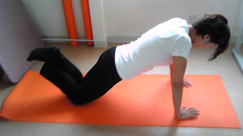 今日はカンタンに申し上げると「バストの垂れ防止」→「腕立て伏せ@女性用」を紹介しましょう。年齢を重ねるごとに?いやいや、出産して断乳するごとに?何だか下に引っ張られていく気がしますよね。そんな状態になるのがイヤで第1子の妊娠中にはじめたのがこの腕立て伏せです。膝を床について、下肢を曲げることで腕にかかる体重も軽減されるのでもともと力の弱い女性向けにはいいかなと思います。そして、トライアスロンをする方にとっても、スイムの時に胸・上腕・背中などの筋肉は少し役に立ちます。