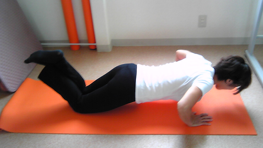 ①腰を反らないこと②胸が床につかないこと の2点が注意点です。