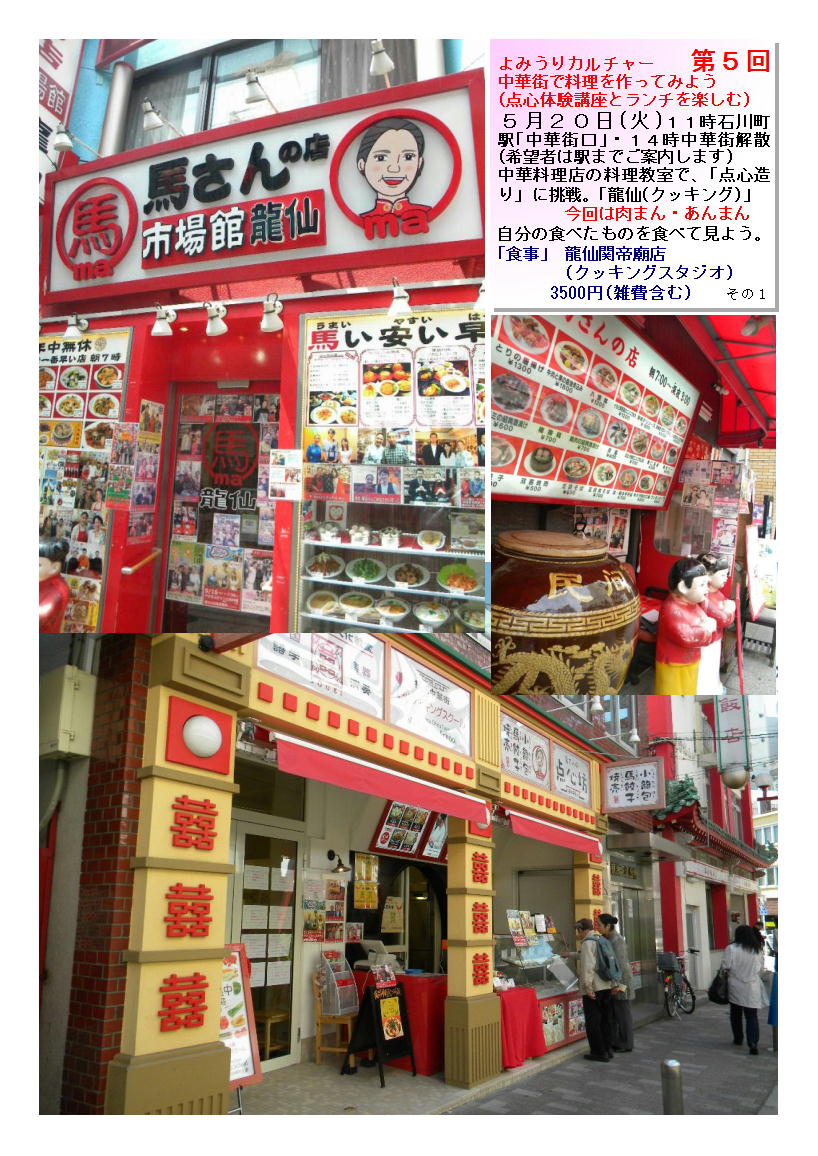 5月20日(火)11時石川町駅「中華街口」・14時中華街解散(希望者は駅までご案内します)