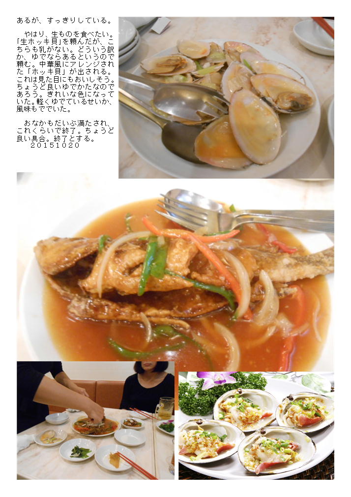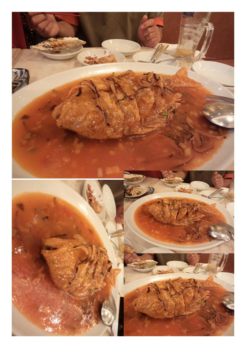 どうも、従業員だけだと話がうまく伝わらない場合が多い(だいぶ慣れてきているが、中国系の男性が仕切っている)。魚を聞けば、良さそうな物が4種入っているという。ブダイが500g丁度良い大きさ、これを揚げてもらい甘酢でまとめてもらうことにした。