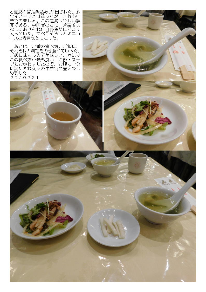 スープは、わかめと玉子のスープ。素材の味が利いている薄味仕上げ。量も通常の店のランチの倍ほどの量がある。当然おかわりもできるが、これで十分な量。おいしい。うれしいのはこの店の香の物、大根の酢漬け。私は好きな漬物。甘酢仕立てかどうも中華に合う。杏仁豆腐は、一つ一つ容器に作るタイプ。手間も惜しんでいない。十分満たされました。600円では十分な物である。