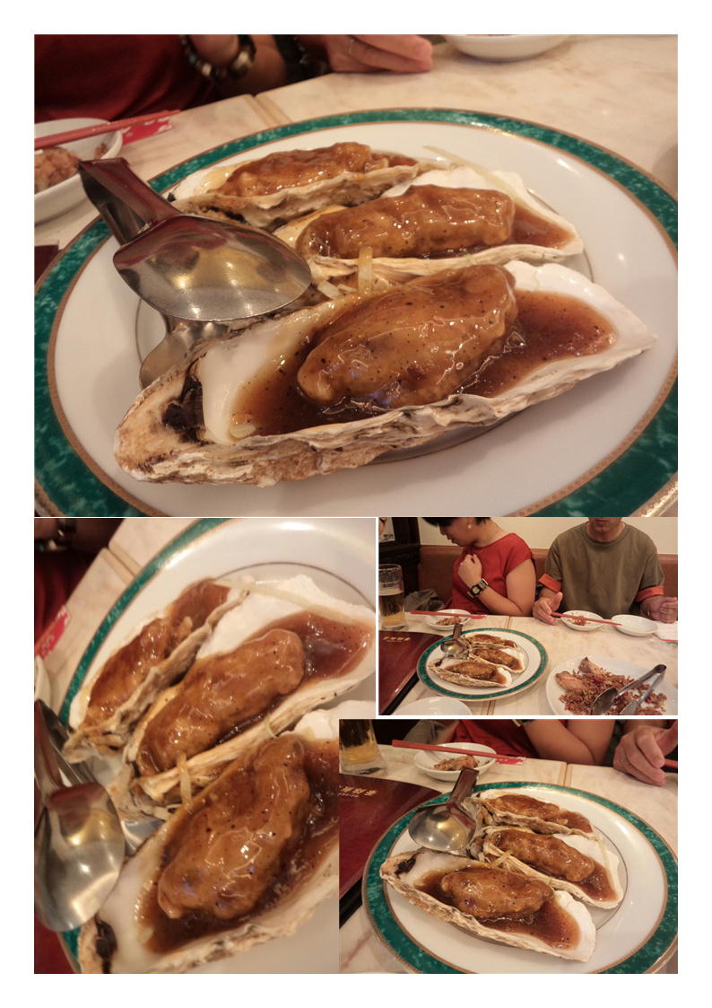 ご主人(オーナー)が私を見つけ、サービスとして④「殻付き活きカキ蒸し揚げ黒胡椒ソース」を作らせている事を告げ、奥に入っていった。さすが今日は忙しいらしい。程なく大きなものが3つだされた。しっかり揚げられているようだが、中はジューシー。相変わらず美味しい。