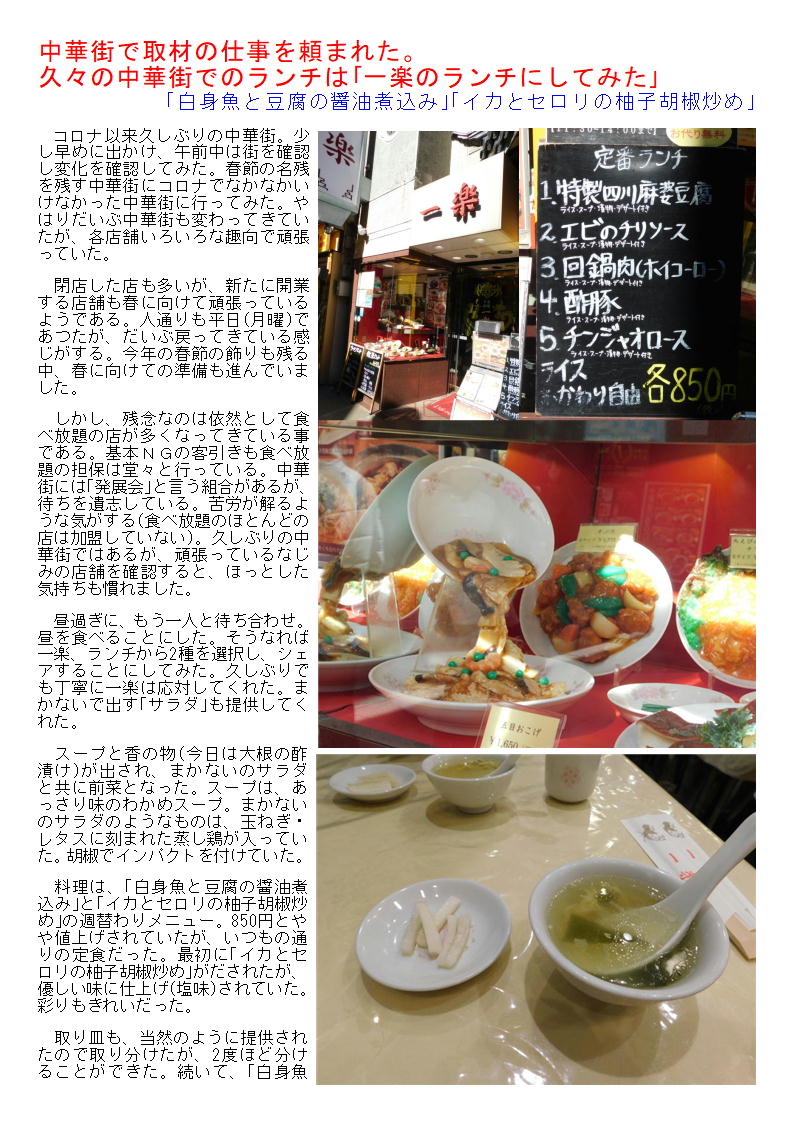 開業して3年ほどになるかもしれない。新館を南門シルクロードにも開業している。ランチは特徴がある。①かす千ランチ3種②定番ランチ3種③麺セットが2種通常準備されるようになった。それそれには特徴はあるが、私の狙いは「海鮮ランチ」。入店してみれば、1階はほぼ満席、賑わっている。