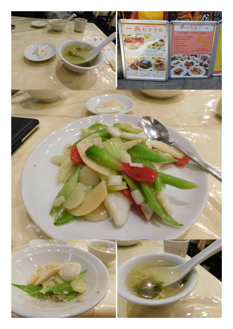 荷物があったので奥のテーブルに座らせてもらう。横が厨房なのでできたてが提供されるのもありがたい。トレーにまとめて出された。基本このスタイルあまりすきでは無いが、しょうが無い。基本それぞれが出されるのが好きである。杏仁豆腐を見ながら食事は避けたい人間。サービスの合理化ではしょうが無いのかもしれない。
