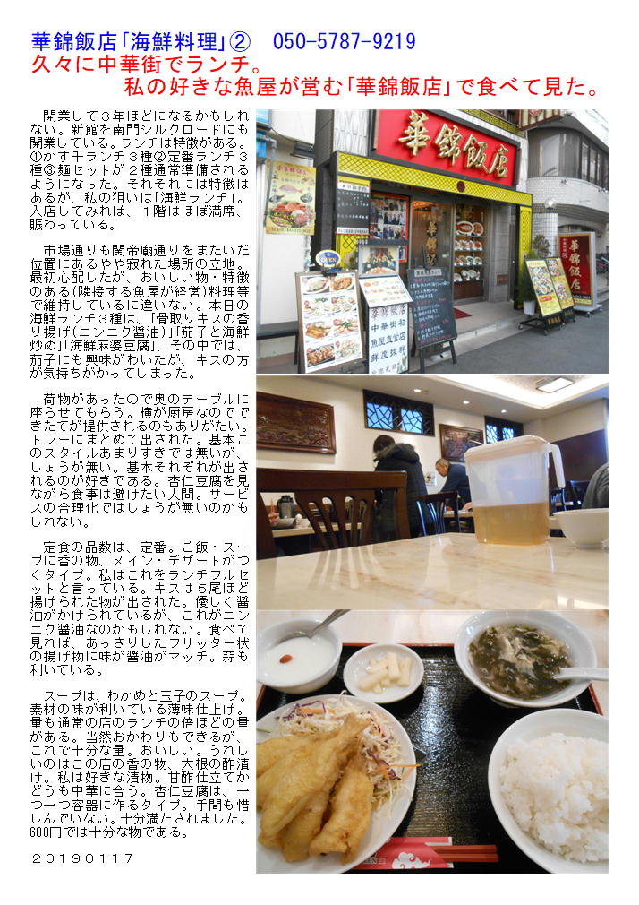 私の好きな魚屋が営む「華錦飯店」で食べて見た。