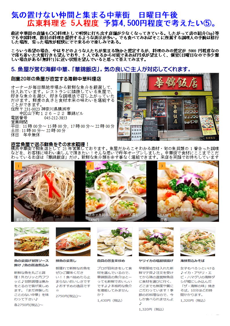 現状番組調べで情報を入れており、なぜ中華街の中でもそのお店がおすすめなのかなどが弱いため、中華街にお詳しい齋藤様のコメン