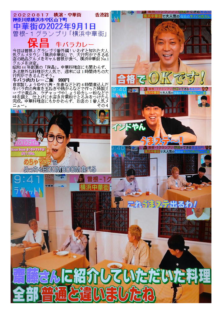 とは言っても、中華料理店紹介しない訳にはいかないので、らしくないと言うことで「カレー」という希望もあったので、「中華たこ焼き」もある保昌さんのオーナーに無理を願って、出演をおねがいいたしました。以前ヒルナンデス・ラビットなどでも紹介したものですが、進化している店舗。オーナーも一層品化しておりました。