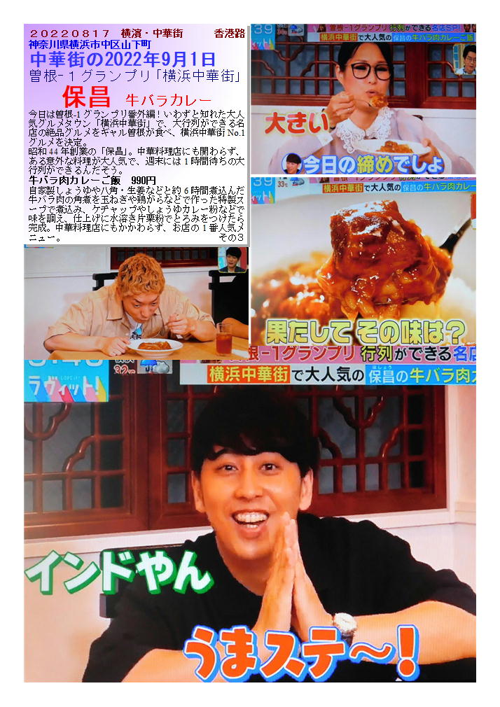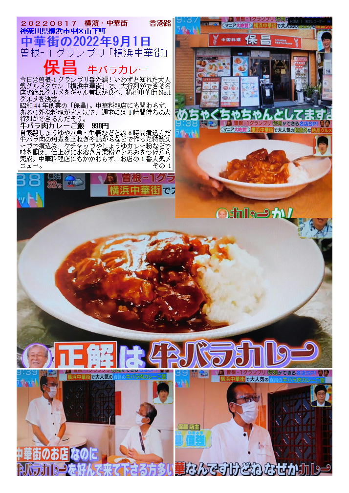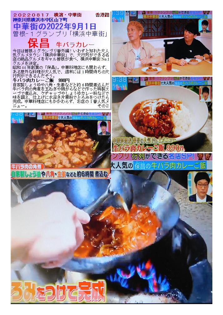 曽根-1グランプリ「横浜中華街」 保昌 牛バラ肉カレーご飯 hpより