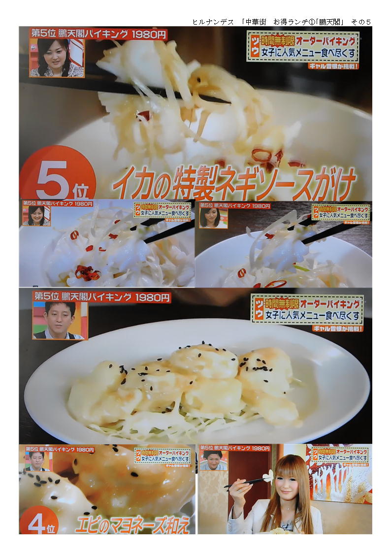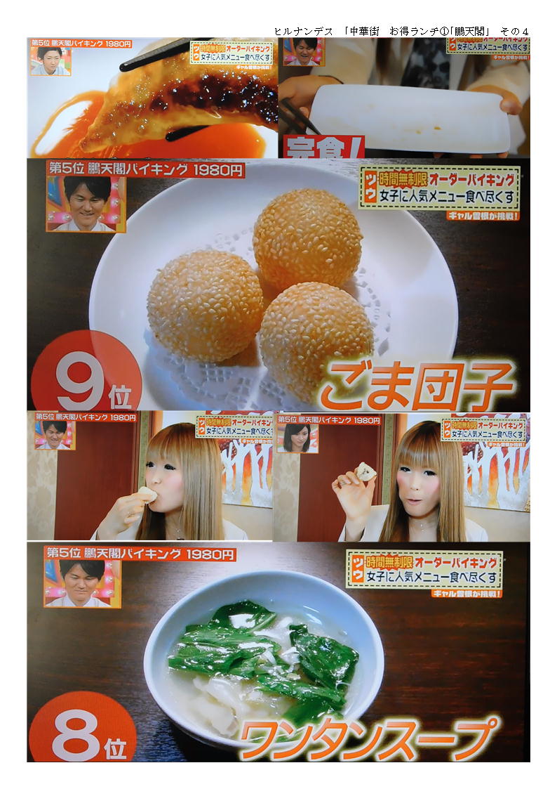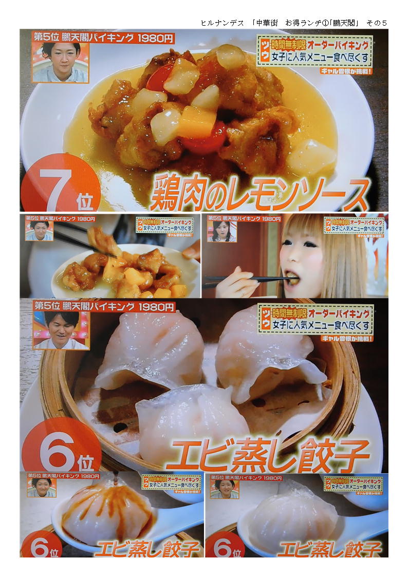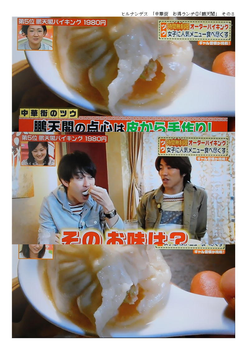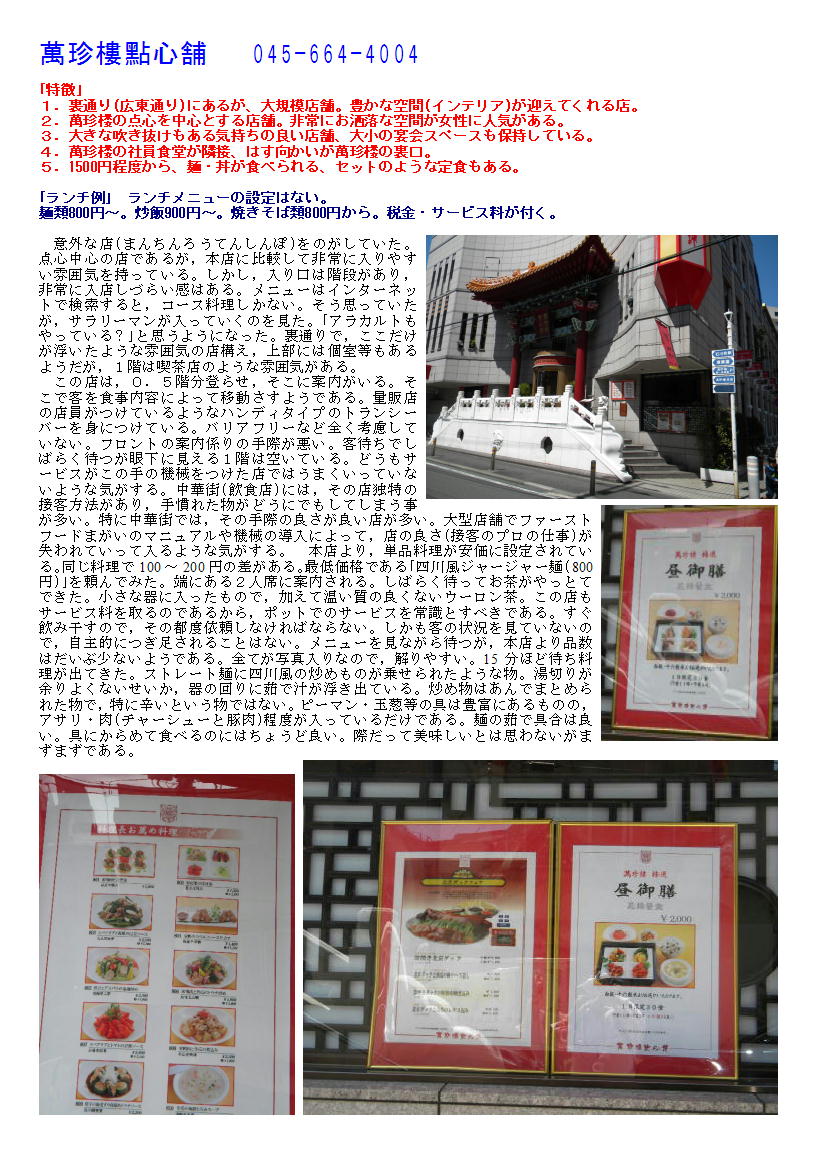 9人だったので、2階の席を準備してもらう。その分「税+サービス料」が加算され、3000円近くになる。まあこれくらいはしょうがないのかもしれないが、ランチタイムぐらいは、たいしたサービスもしないのだから「サービス料」は不要であろう。中華街でも大型店舗は、サービス料(席料といってとる場合もある)を加算されるので、予約の時十分に確認しておく必要がある。