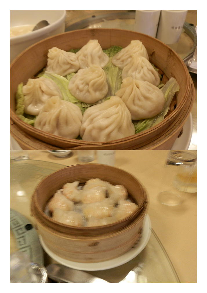 ④海鮮のとろみスープ。今日は、豆腐が小さく刻まれた、白炭スープ。北京料理らしく、こくのあるもの。料も多い、とりわけても半分ほど残る量。ちょうど中休みともなる。小さなさらに、葱とたれ、レンゲが出された。やつと北京飯店の得意料理、⑤ショウロンタンパオが出された。たっぷりと汁が入った小籠包。さすがに美味しい。葱がよく合う。