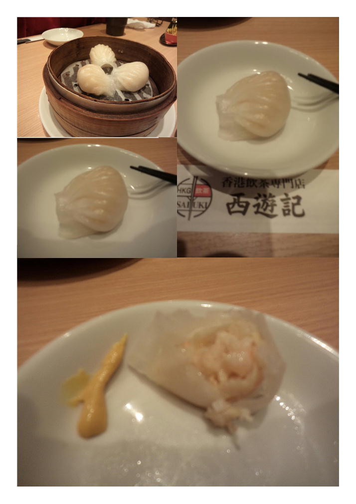 蒸し物が続く、⑥エビ蒸しぎょうざと続いた。薄い皮で蒸された餃子は、中が透けて見えている。食欲を増進する餃子。蒸し餃子専用の皮であろう。それぞれ、サービスの女性に食べ方を伝授してもらいながら、堪能させていただいた。