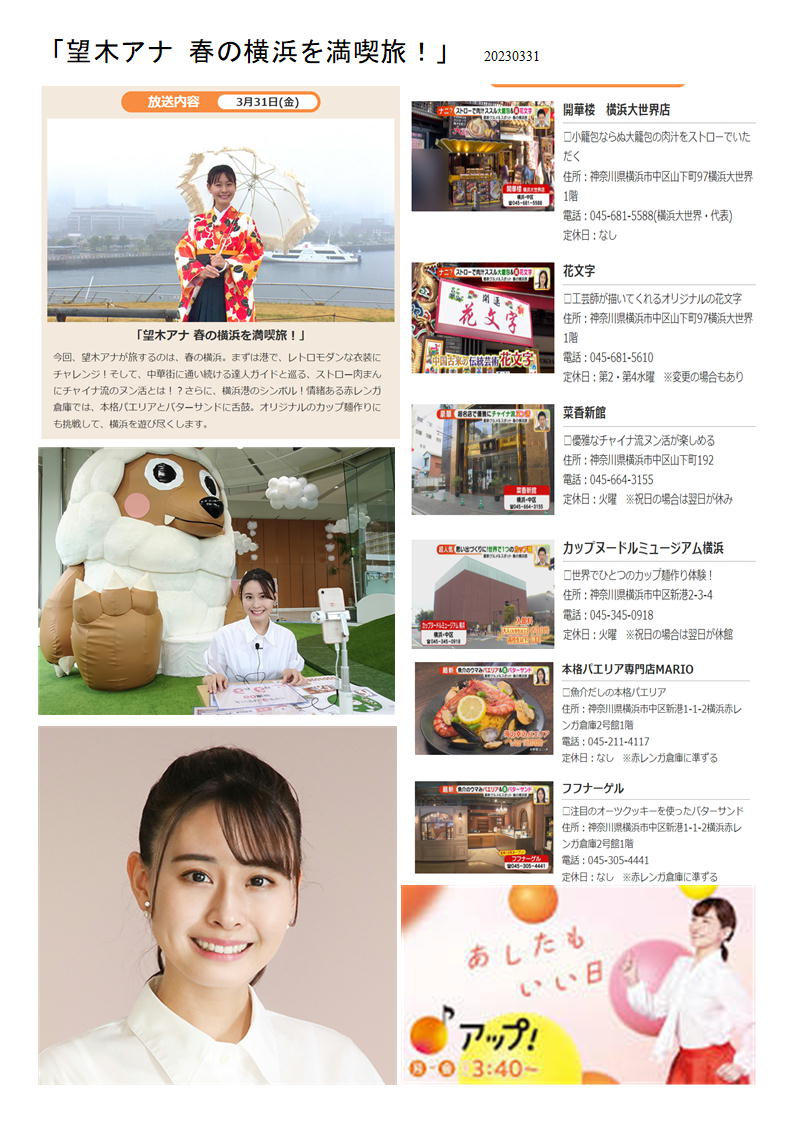 「横浜中華街ハカセの旅」をテーマとした今回、中華街の全店舗を制覇したという“ハカセ”の解説を聞きながら、4人はより深く中華街を学ぶことに。裏路地の見落としがちな店や、“ハカセ”がもっともオススメする店などが紹介される。グルメ以外の中華街の魅力も伝える4人の旅をお楽しみに。