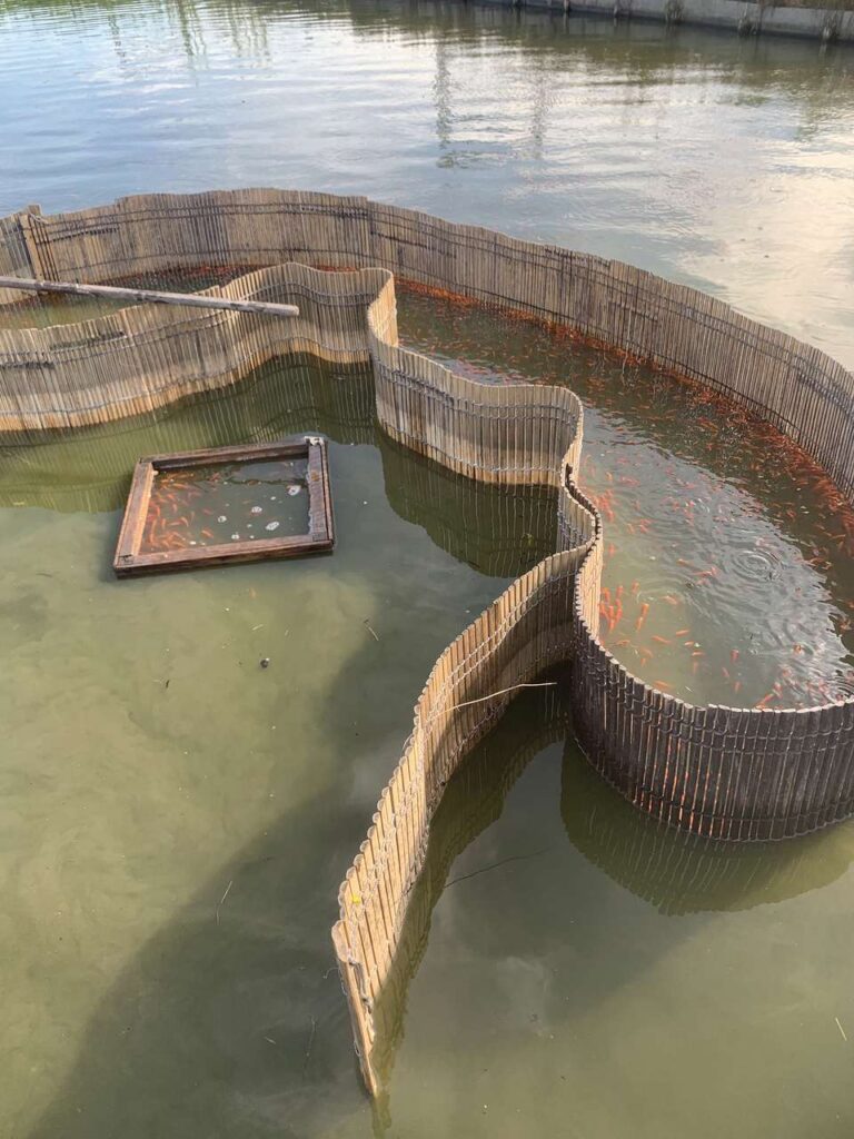 天候やら水 機械の故障などで金魚が使えなくなったり急遽 注文が増えたなどとっさに対応できるように つねに金魚がいるときに上げれる池をひかえてるんだけど いかんせん そのまま置いといても少しずつ大きくなっていく大きくなりすぎて規格から外れてしまうともっと大きく育てるまで使えなくなるので 今回 上げてくることにそこにまた 小さい金魚を移動するんだけどね 早