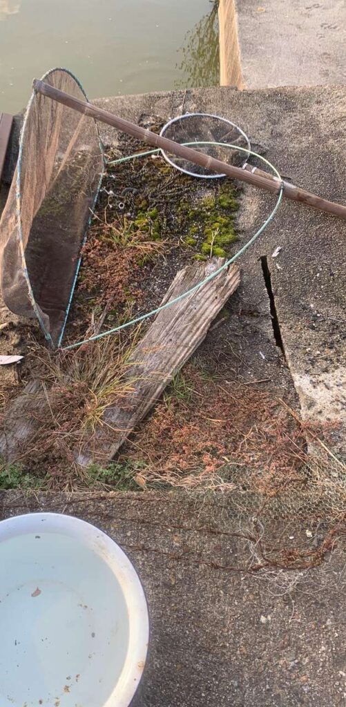 この間 上げた池の隣の池も竹の簾を持ってきてる ついでにスオシこの池はね一番最初に幼魚を移動さした池なんだけど初めの方からあまり姿を見せてくれなくていてるかいてないのかわからなくて計算に入れられなかったんだけどぼちぼち整理していかないといけないからね 上げてみたんだけど バケツ2杯の幼魚 入れて とれたのはバケツ一杯あとは ヒコウキ虫と言われる水生昆虫がいっぱい
