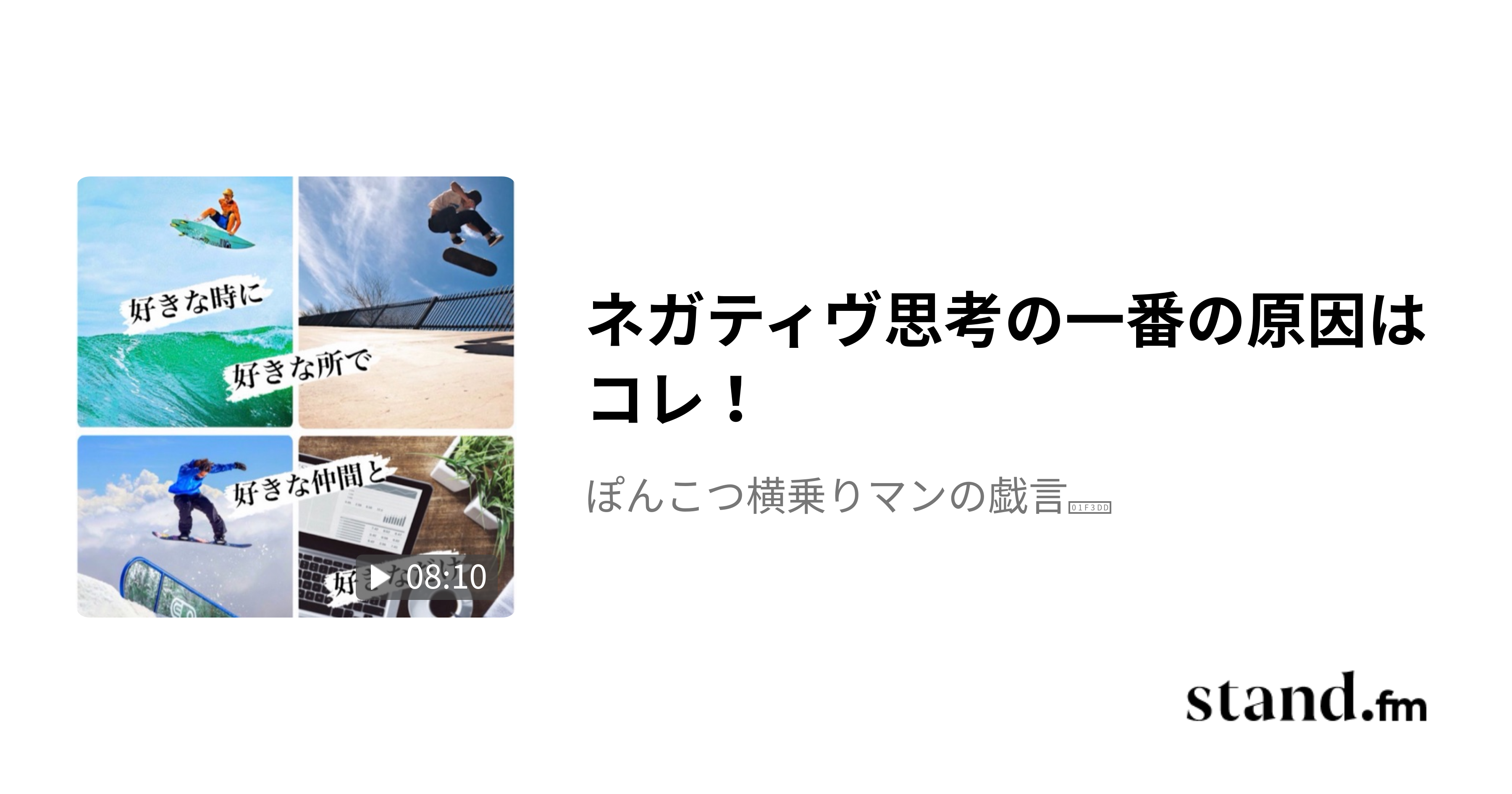 何か始めてみたいけどマイナスなイメージしか出来なくて初めの一歩が踏み出せないって人には特に参考になるのではないかと思います。良ければ是非お耳をお貸しください↓