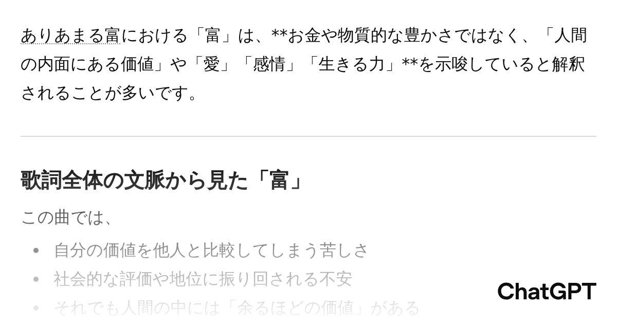 この ♪ありあまる富 で示唆するところの 「富」とは…