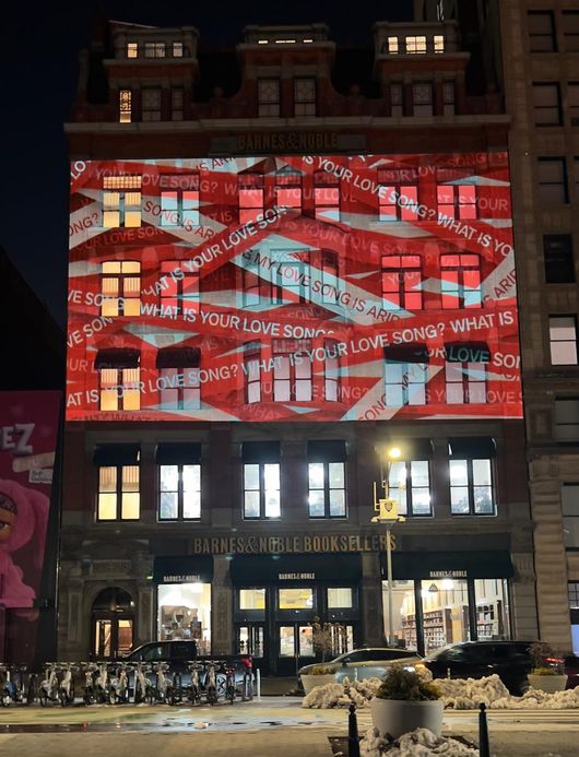 市民たちが壁に挿した花をすべて持っていくとバラの後ろに隠されていた「WHAT IS YOUR LOVE SONG?」という質問と防弾少年団のロゴが姿を現した。