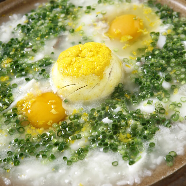これがメインの柚子雑炊。柚子の香りがとても良いですね。