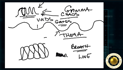 そのため、ピークは上下にジャンプしています。ここは恐怖の中、シータモードです。これが人々が瞑想する理由であり、人々が早朝にメッセージを受け取る理由です。なぜなら、混沌が静止しているとき、あなたの脳が休んでいるからです。