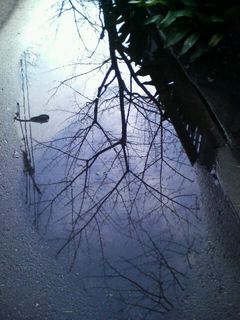 水溜まりにうつる不思議な世界…。
