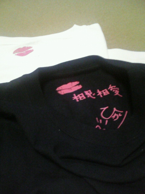 今日の画像みてください!Tシャツなんですけど、私の好きな“相思相愛”っという言葉とキスマーク、サインがはいっているんです(^_^)v