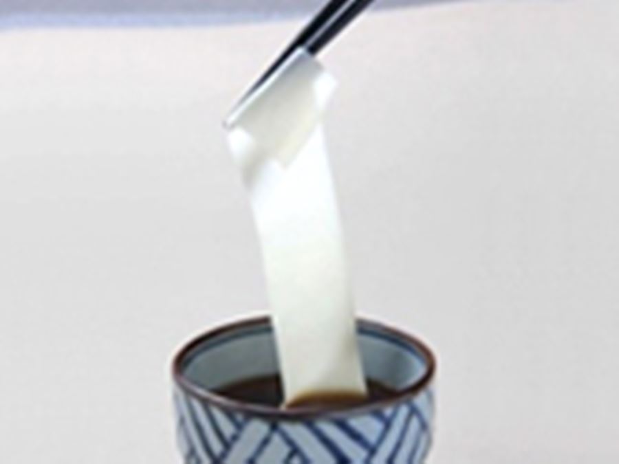幅広のぺろっこうどん*3用に、だいこん、にんじん、こんにゃく、ごぼうの水煮具材だけで作ってみました。けんちん汁として食べる場合には、これに豆腐や里芋、きのこなどを加えます。