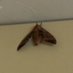 勘弁して下さい。。。 いつから居た? 全く気付かなかった。。。 でも気付いてしまったらアウトです。 集中できません。。。 嫌いなんですよ、蛾。 このピンボケ具合が へなちょこさを物語ってるでしょ? 出来るだけ離れて、望遠です。。。 この形、、、ガウ攻撃空母に似てる。