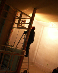 壁を塗ってます。