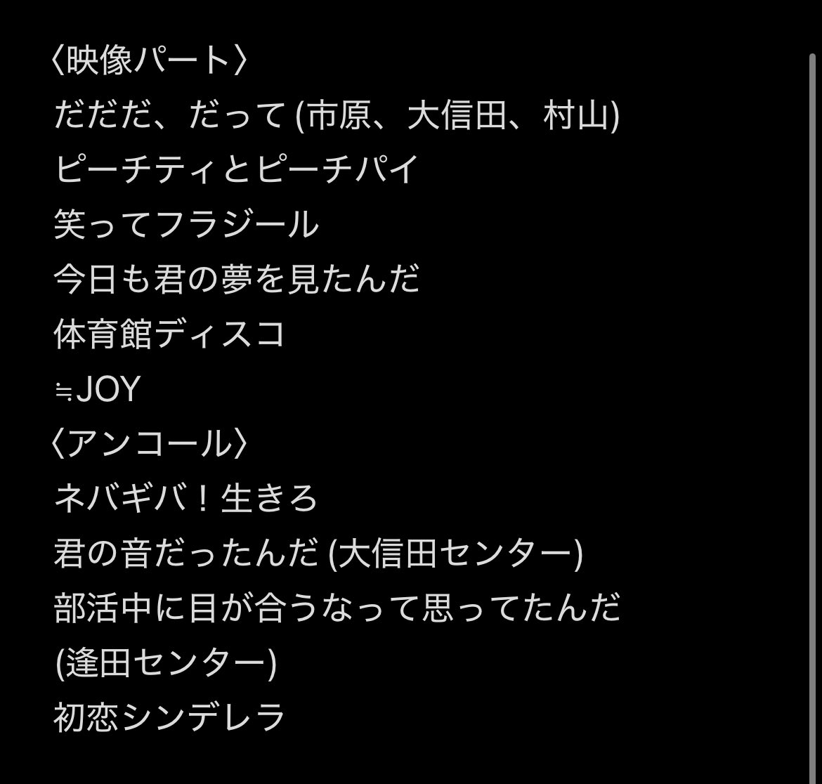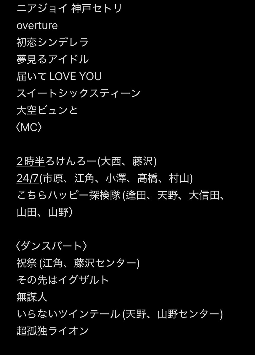 ニアジョイ神戸のセトリです