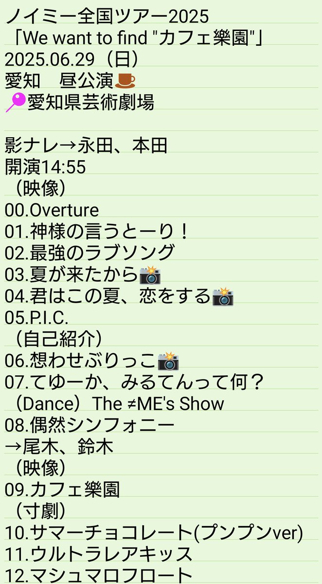 愛知県芸術劇場大ホール 夜公演 セトリ