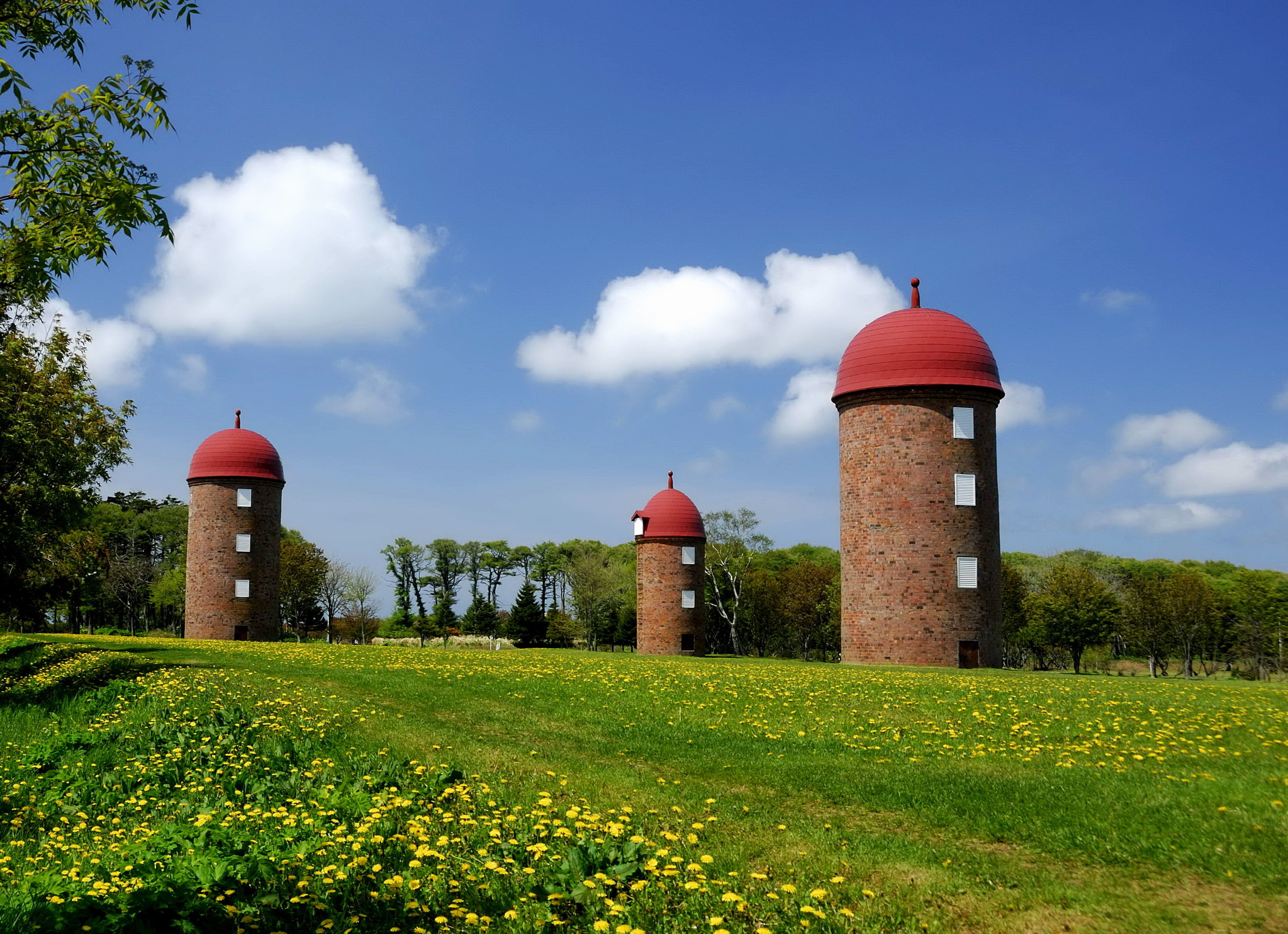 お腹一杯になったら根室で気になって居た公園へ、よくよく聞いたら嫁も行きたかった処だったそうで、大きなサイロが3基が公園内の広い芝の中に保存されてます。