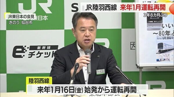 2022年5月から運休していた陸羽西線が来年1月16日に運転再開するようです。